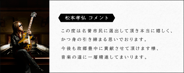 松本孝弘が、生まれ故郷の大阪府・豊中市の名誉市民に選定され、本日発表となりました。