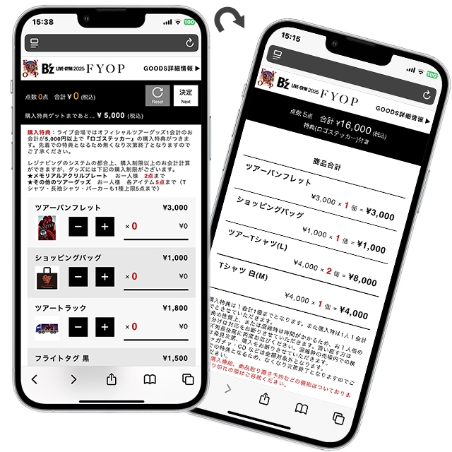 B’z LIVE-GYM 2025 -FYOP-公演では、会場での混雑緩和・待機時間短縮をはかるため、グッズ販売整理券を使用したグッズ販売を行います。